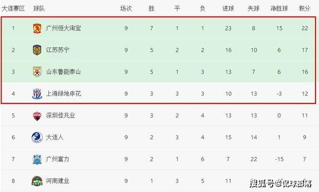 本轮大连赛区的四场比赛全部结束,其中最新积分榜分别是恒大22分、苏宁17分、鲁能16分、申花12分、深足11分、大连人9分、富力7分、建业6分。目前恒大、苏宁、鲁能三队的领先优势比较大,再加上实力强劲,不太可能会连续掉链子,所以携手晋级的概率非常大。