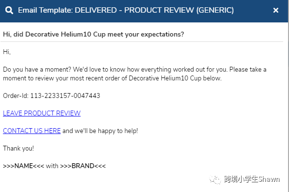 下图是h10催评模板的文字内容,是完全符合亚马逊站内沟通指南的,大家可以放心使用