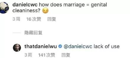 网友在下面留言提问:结婚10年与生殖器官干净有什么关系?之后,他回复"lack of use"(缺乏使用),很直白的告诉大家:"结婚十年,性生活很少。"