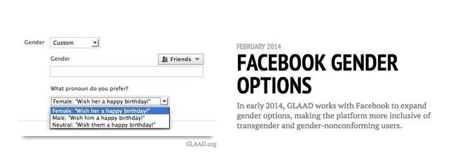 Glaad 在官网上发布了和 Facebook 合作推出多元性别的信息。