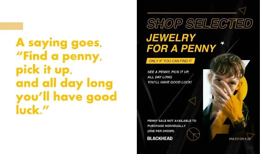 根据社交媒体提供的线索,用户只要在BLACKHEAD网站找到属于自己"lucky penny"产品,与其他产品一同下单,该产品就只需支付1分钱。