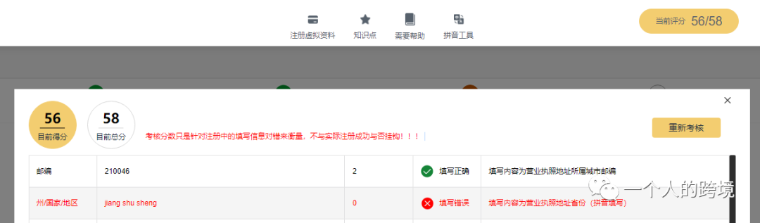 8. 我们可以通过考核报告来查看自己填写的信息是否正确。一旦不是满分,就代表着注册资料填写有误。