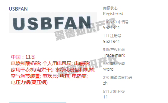 一个具有吸引力的商品界面listing必不可少,黑心企业盯上这点,悄悄拿常用的关键词注册商标,例如小Jude找到几个与风扇有关的商标。