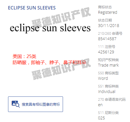 小Jude还查到ECLIPSE SUN SLEEVES关键词在美国注册了商标,虽然这个商标与SUN SLEEVES多了一个单词,但是也值得留意的。