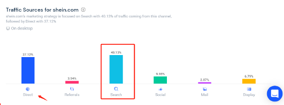 (SheIn 独立站流量,数据源:Similar Web)亚马逊上的流量,是一种大家争抢的公域流量,是一种快流量,好比自来水,来得很快,但受制于人。亚马逊接上水管就有,撤掉水管就马上没有了。相比之下,SheIn独立站内的流量,是一种私域流量,属于自己的。但它又是一种慢流量,是靠自己挖井、挖水库(SEO+运营)出来的,而不是接水管来的。自己挖井很累,很慢,但流量可以反复用,有回头客。数据显示,SheIn独立站的直接流量占了37.12%,搜索流量(40.13%)也有近一半是自然流量。这些都是免费的,可重复使用的。