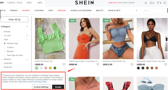 SheIn力图像Tik Tok一样,用智能工具捕捉用户的浏览行为、兴趣、爱好,并个性化地推荐商品,让不同的用户总能淘选到自己的喜欢的衣服。