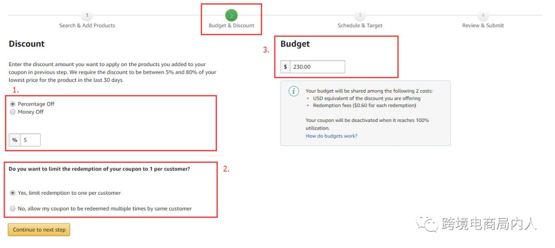 有些卖家为了爆单会设置50%的折扣,这样两个Coupon叠加就成了100%的折扣了,买家基本只需要支付个运费就可以白嫖一件商品。考虑到这种情况,卖家可以通过降低Coupon折扣力度来避免潜在的危机,比如设置5%的折扣,2个5%叠加,也只有10%的折扣,也不会造成太大的损失。