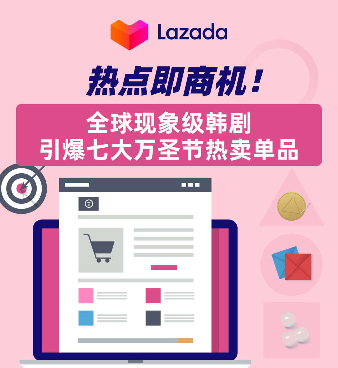 开播以来,东南亚一直在全球需求榜单上占据重要席位,相关应运而生的游戏产品、道具、服装等同款周边,也纷纷登上了Lazada爆卖榜单和搜索热词排行榜。尤其值得关注的是,剧集爆款需求高涨的当下,《鱿鱼游戏》热点话题与"万圣节"的创新结合更具魅力。预计今年《鱿鱼游戏》剧中人物将成为人气最高的装扮造型,且随着万圣节的临近周边同款或迎来新一轮需求高峰。