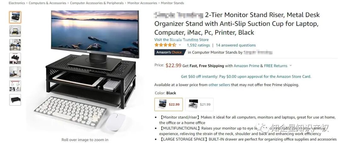今天在浏览亚马逊的时候,看到一款显示器支架,它是美亚站的 Amazon's Choicein Computer Monitor Stands,售价22.99美金,留评1592颗星。