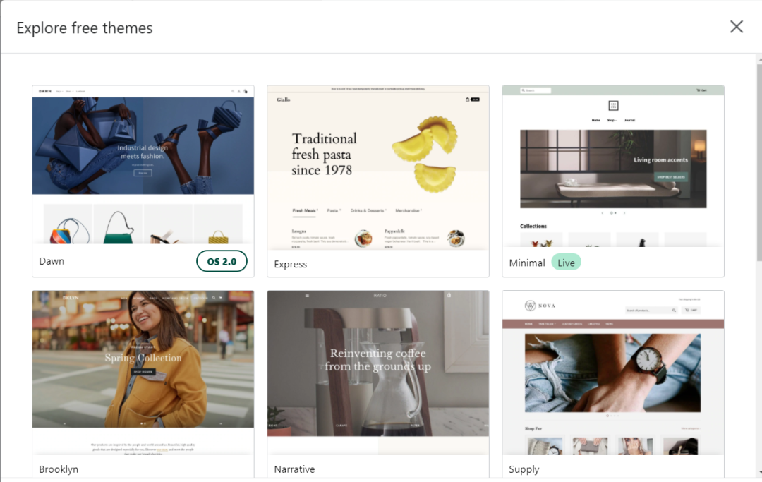 去shopify theme去pick一款你喜欢的主题