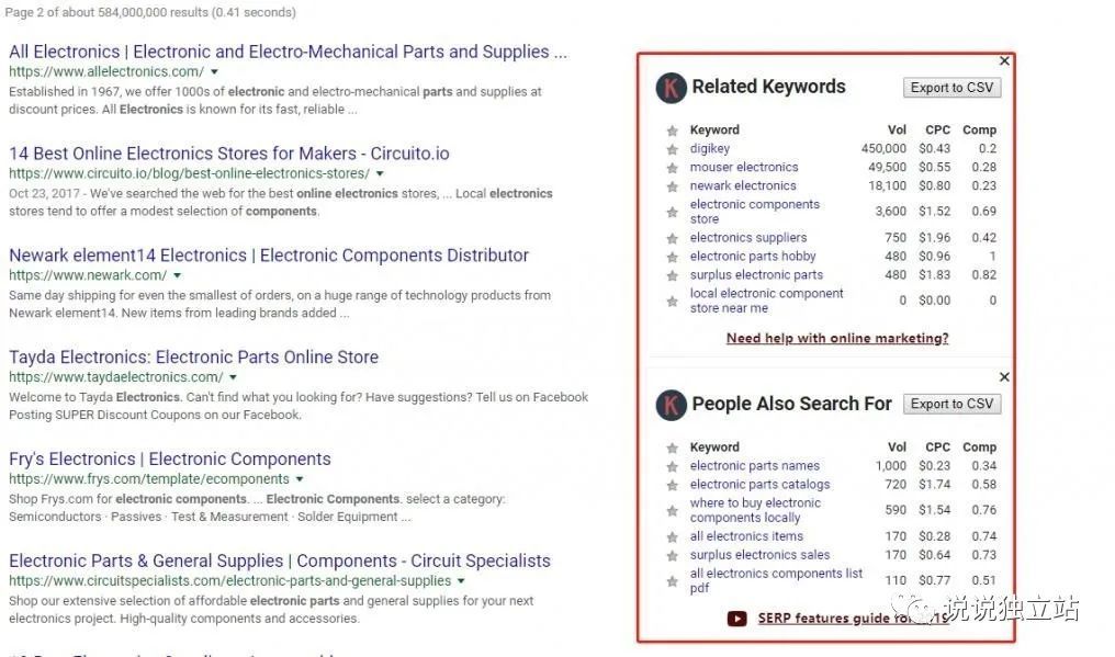 这是一个浏览器插件工具,非常好用,数据来自于 Google Keywords Planner. 添加到浏览器之后,你可以在 SERP 页面看到关键词的指数、CPC 出价、Competition 等。