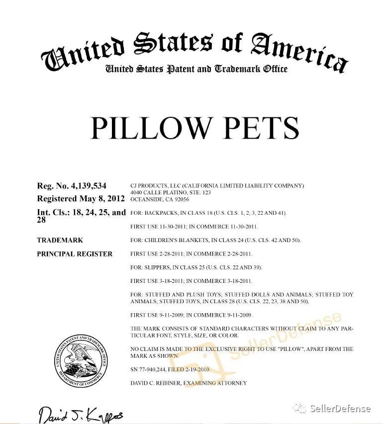 此次是商标、版权维权,Pillow Pets是原告注册的商标,卖家在产品标题、图片、五点、描述上不能使用 Pillow Pets 或者近似的 Pillow Pet,否则就算侵权: