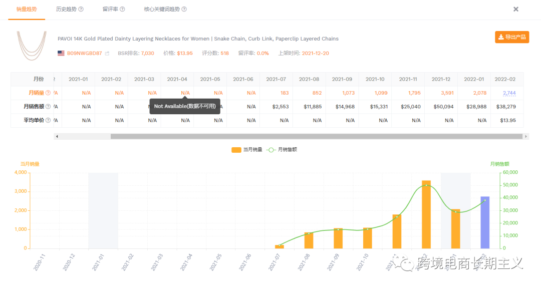 我拿他们在2021年4月上架的一款女士项链为例,