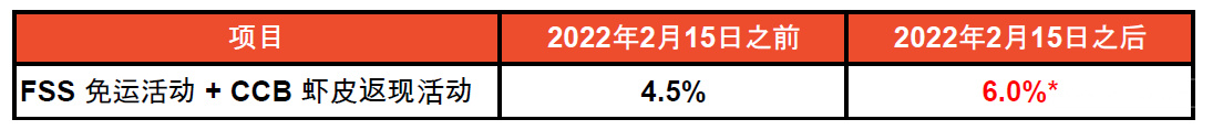 现有的返现+免运服务费率将于2022年2月14日23:59 终止,新费率将于2022年2月15日 00:00 生效,更新后费率为下: