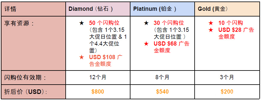 另外,卖家也可选择购买单个闪购位。价格:USD $21.60 / SGD $30.00闪购资源包数量有限,欲购从速!