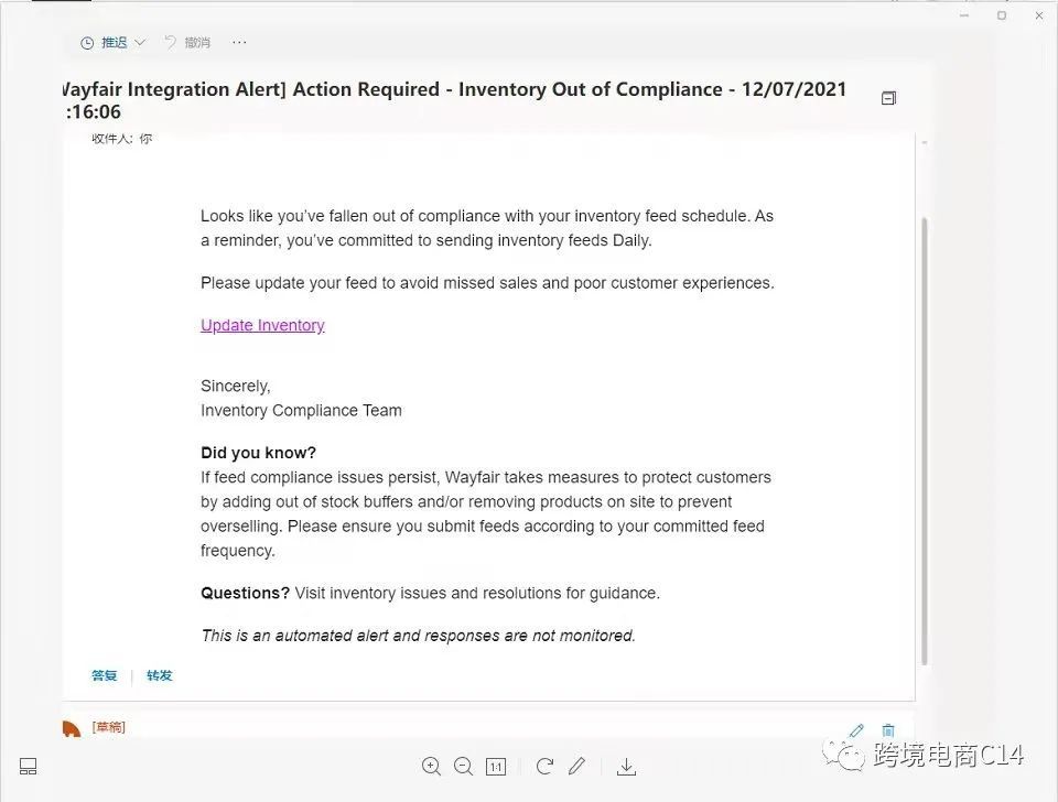 "跨境电商C14"应该是全行业拥有最全面、最系统化、最新的关于wayfair、walmart平台的干货、资讯的公众号,如果你在做或者打算做wayfair、walmart平台,请点击上方公众号关注、标星!