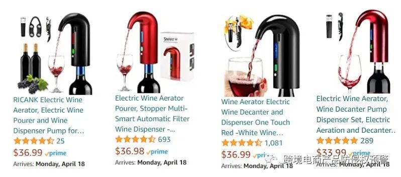 本文提到的这款"电动倒酒器",在亚马逊美国站上有很多很多企业都有售卖!不知道他们有没有想过,这款产品有没有发明专利?