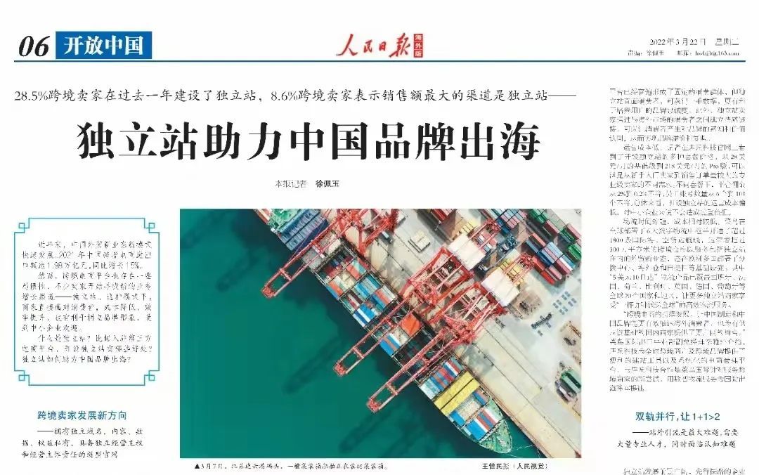 3月22日,人民日报发布《独立站助力中国品牌出海》文章,文中指出由于跨境电商平台存在一些局限性,不少跨境卖家开始寻找新的业务增长渠道——独立站。