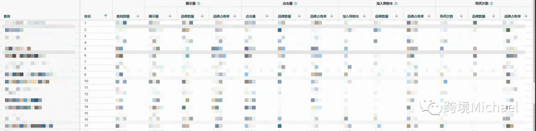 我们使用搜索漏斗印象、点击、购物车添加和购买的查询以及你自己的品牌表现的组合来计算所有查询的分数并对其进行排名。默认情况下,列表是按照查询排名进行排序的,从最高排名开始。
