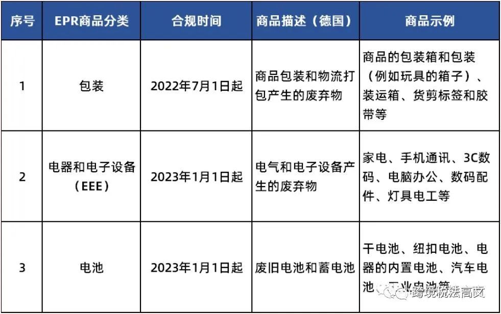 EPR涉及商品及废料
