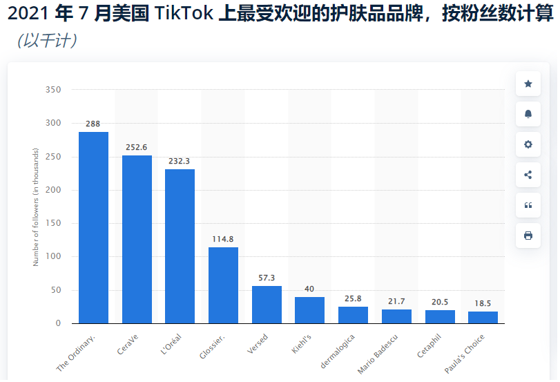据调查,2021年7月,它成为美国地区TikTok上,最受用户欢迎的护肤品牌。