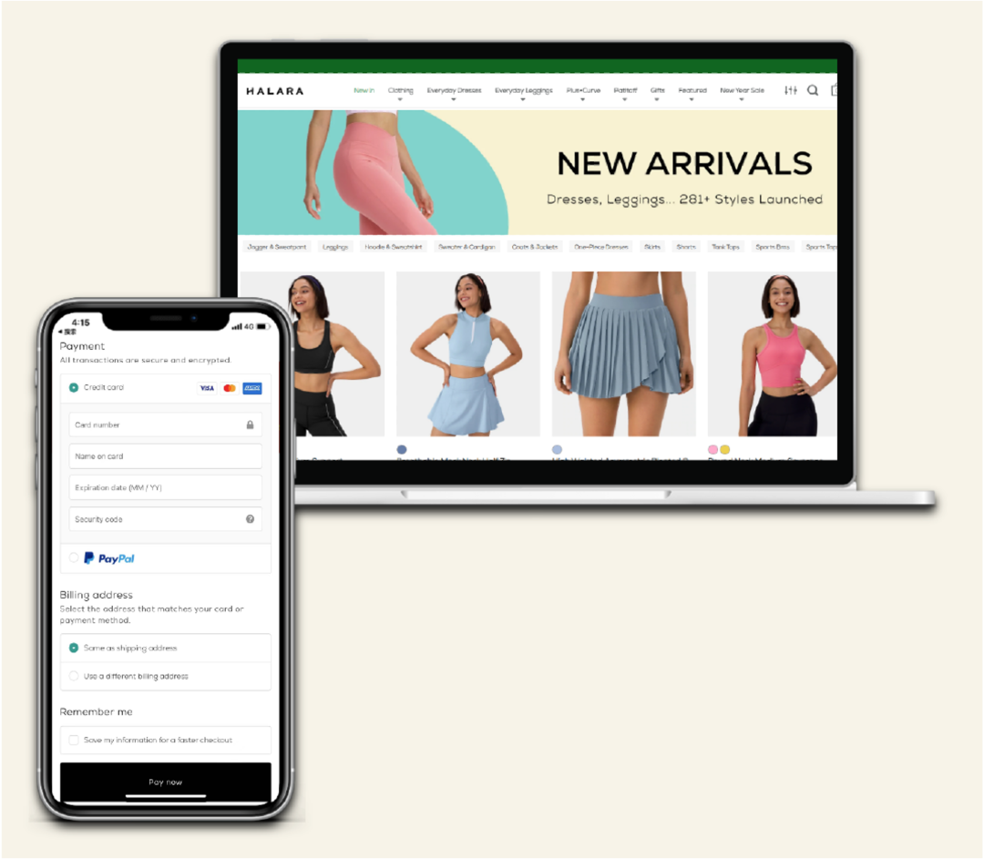服装品牌在做本地化布局时,往往采用多站点模式经营,并针对不同国家和地区,在网站中适配不同的语言、货币定价及视觉风格。在支付结账环节,出海商户也应充分了解目标市场的主流支付方式,在选择收单合作伙伴时,需要考察合作伙伴的支付能力是否覆盖广泛,以减少因支付方式覆盖不足而造成的消费者弃购,提高转化率。