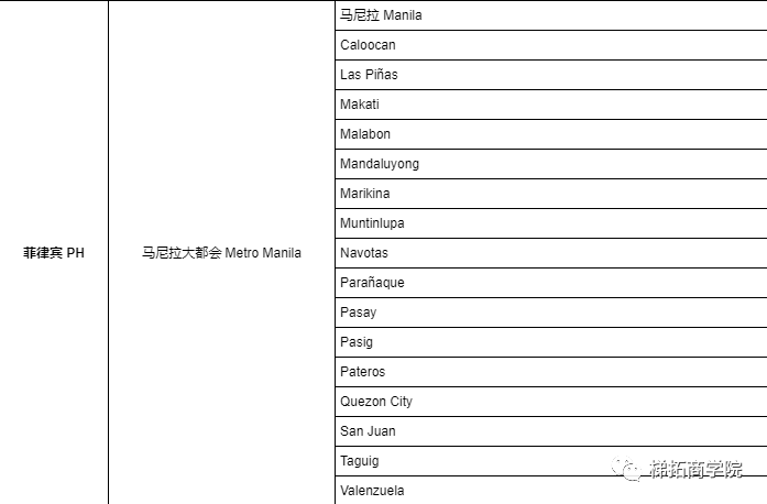 支持区域详细列表: