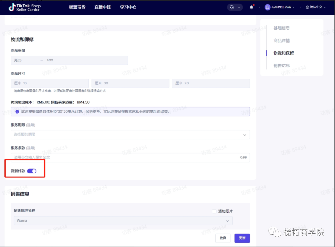 1.商家通过全球店铺发布到店铺商品时,如果当前类目支持COD将会默认打开COD
