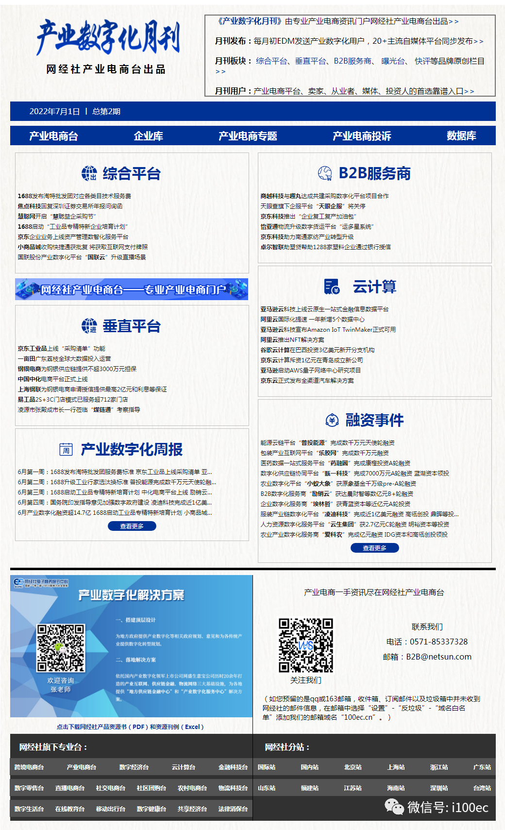 1688启动工业品专精特新培育计划、小商品城收购快捷通获批复、凌迪科技完成近1亿美元融资、中化电商平台上线、阿里云推出NFT解决方案等。以下为网经社产业电商台(B2B.100EC.CN)为您带来6月产业数字化领域各平台及服务商最新动态回顾。