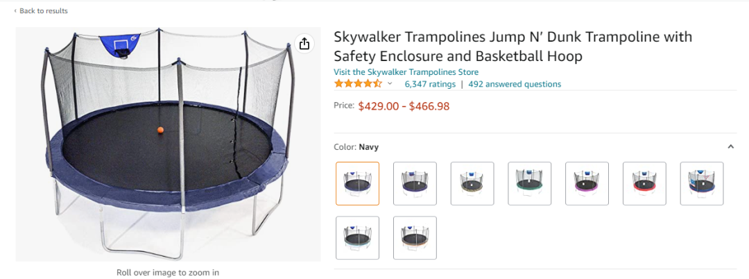 在亚马逊上,SKYWALKER品牌的蹦床产品是畅销单品,一些热门listing累计评论数千个。