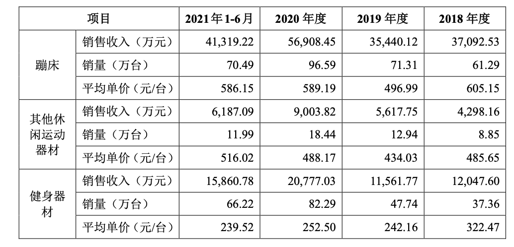 最终,三柏硕也不负众望。2020年,三柏硕卖出了近百万台蹦床,蹦床也成为其收入占比最大的产品,各年度收入占比约60%,成为了绝对的销量之王。