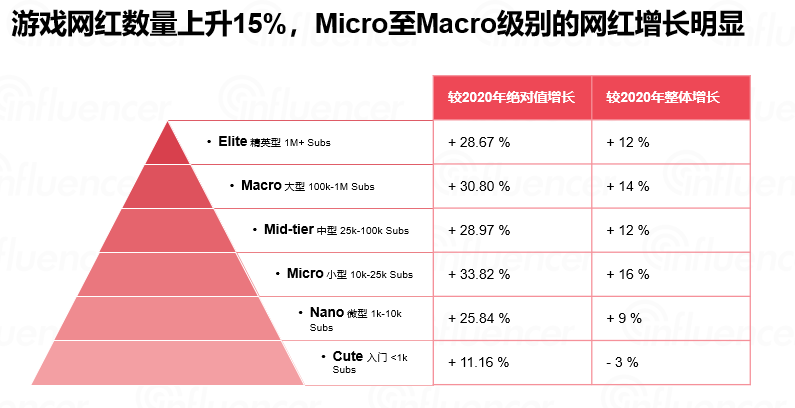 与KOL合作:据Morketing Global发布的《2021年YouTube Gaming Insight及2022年实操指南 》显示,2021年YouTube游戏网红增长15%,而且小型和微型网红增长明显。