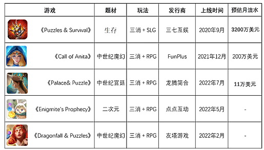 年初,Sensor Tower 发布 2021 年全球手游收入增长榜,融合了"三消+SLG"两大玩法的《Puzzles & Survival》成为 Top 5 中唯一一款凭借玩法创新入围的手游产品。