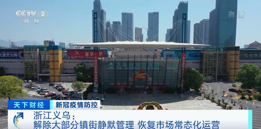 目前,义乌中风险区仍按现有管控措施做好社会面管控工作。实行静默管理的区域继续执行足不出区,生活物资配送到点,错时取物和参加核酸采样等要求。解除静默管理的区域,将有序恢复农贸市场、商超、理发店等民生服务场所,有序放开物流、电商等企业生产经营。义乌国际商贸城也于18日恢复常态化运营。