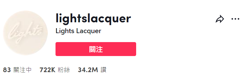 lightslacquer加入TikTok后,获得了72万粉丝,3420万点赞。拥有了一批忠实的粉丝,具有一定的品牌影响力。