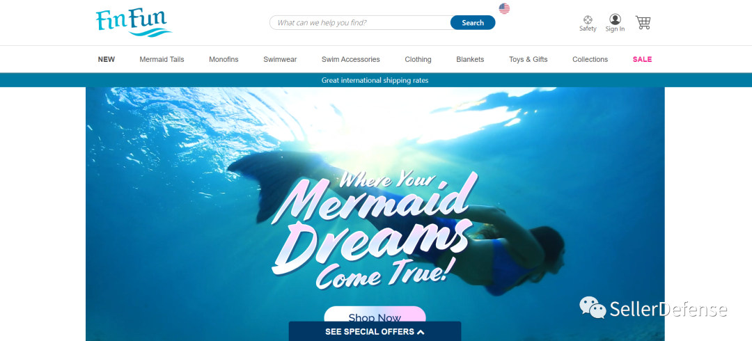 Blue Spring Partners, LLC在2010年9月首次发布了FIN FUN产品。其销售的主要产品有美人鱼尾巴、鱼鳍、泳衣、鱼翅和其他游泳配件。