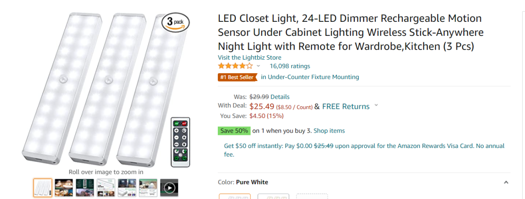 以壁橱灯为例,BSR榜单上将近3/4的产品都是有视频的。这个足以见证视频的重要性。