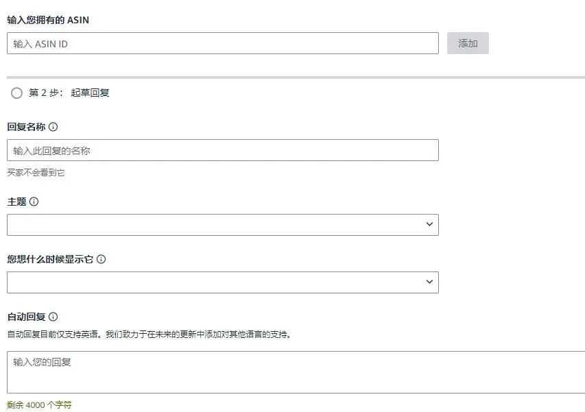 2. 设置好主题:支持商品详情、保修、配送、退货政策、安装与疑难解答等六大类。FBA 卖家通常重点设置 " 商品详情+保修+安装 ",FBM 卖家则建议额外加上" 配送 "和" 退货政策 "。