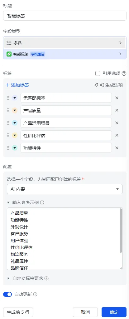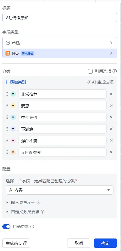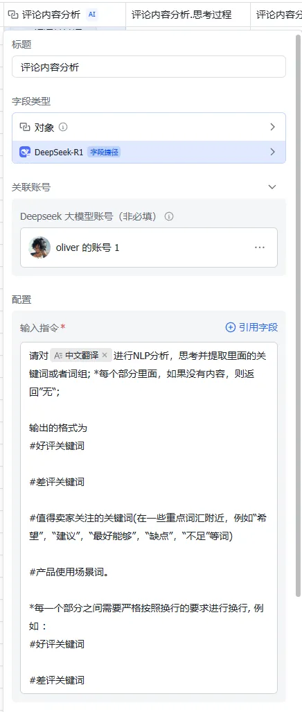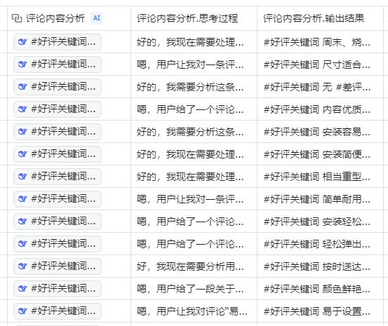 但是现在我们可以借助AI来进行评论的数据分析,AI是通过NLP这个自然语言为基础而建立的,因此相比人工直接分析来说会有很多优势。并且现在AI已经结合进了飞书的多维表格,这个使我们总体去分析评论和挖掘评论都更加全面和省时了。