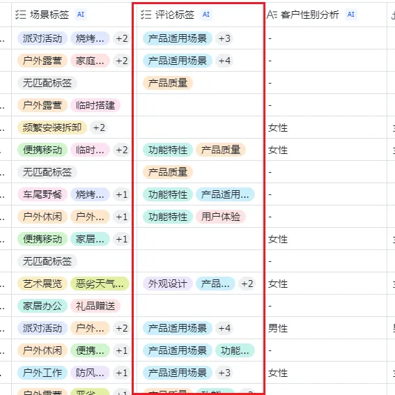 3.通过卖家精灵提供的飞书多维表格对评论进行分析