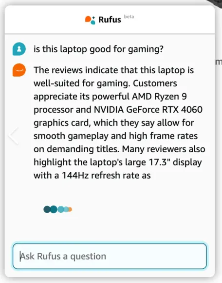 3. 动态信息整合:Rufus可以快速总结用户评论、对比不同商品,甚至直接回答"这款和那款哪款更耐用"这类传统搜索无法直接处理的问题。它像一个智能购物助手,帮用户完成信息筛选。