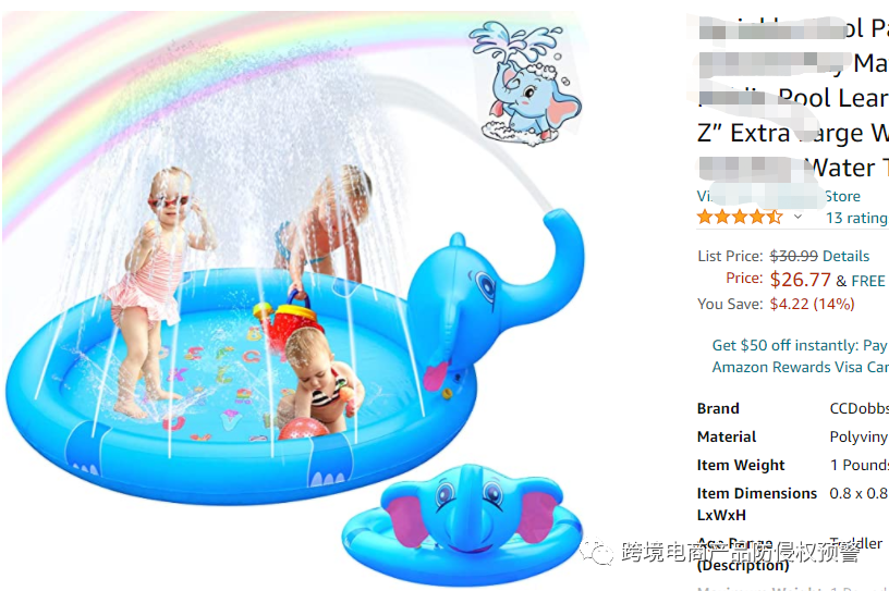 亚马逊美国站的一款象形【喷水泳池】,应该是一款新品,我判断是参考其他象形【喷水泳池】而设计出来的新品。见下面产品图: