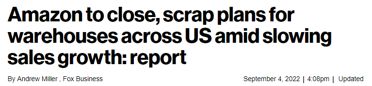 单单就上周,亚马逊就通知马里兰州政府,将会在下月关闭当地的两个FBA配送站,这两个配送站都有好几百名员工,亚马逊将会在合理安排相关补偿后解雇他们。像这样的大手笔减少FBA仓库的操作越来越多,Q2季度中亚马逊的员工人数减少了大约 100000 人,这是亚马逊历史上最大的季度环比收缩。