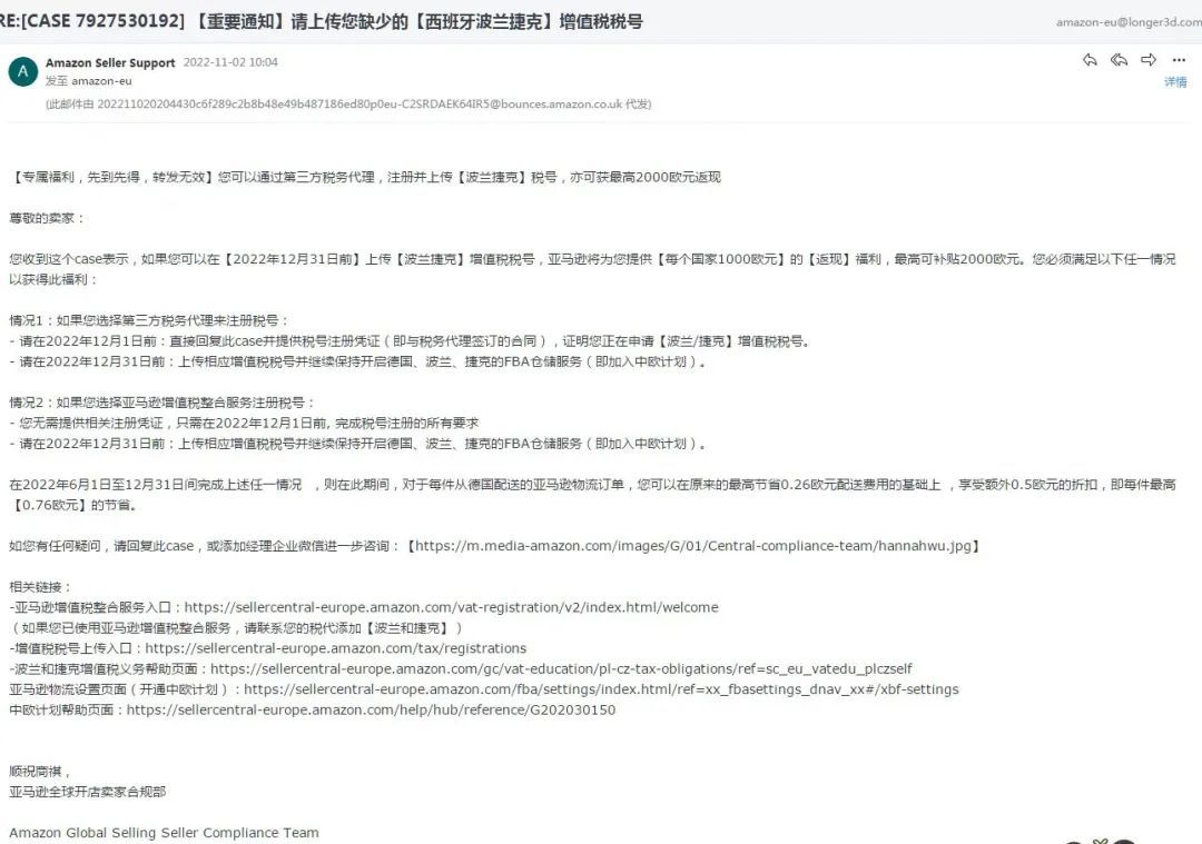 1️⃣2022年12月1日前,直接回复收到的case,提供税号注册凭证(即与税务代理签订的合同),证明你正在申请波兰和捷克的VAT增值税税号;