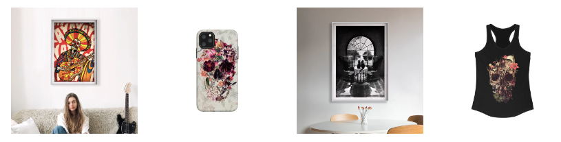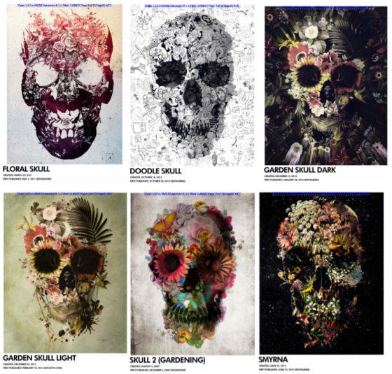 原告Ali Gulec 将传统插图与计算机成像相结合,制作出极具设计感的作品,并将这些作品应用到服装、家居装饰、手机壳等产品。