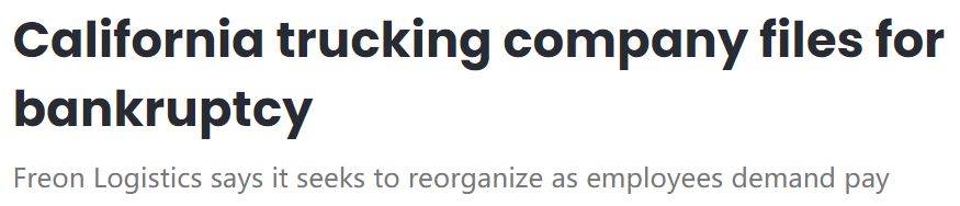 近日,总部位于加利福尼亚州的物流巨头Freon Logistics向法院正式申请破产。